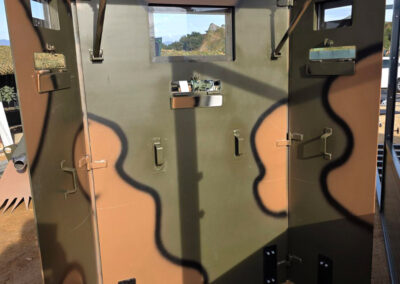- Κατασκευή από βαλλιστικές χαλύβδινες πλάκες πάχους 6–20 mm, ανάλογα με τις απαιτήσεις του πελάτη